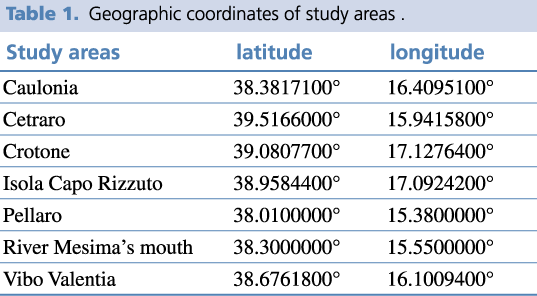 However, for that concern the values observed in Cetraro and Isola Capo Rizzuto areas, by the statistical test used to analyze the experimental data, these were not considered statistically significant.