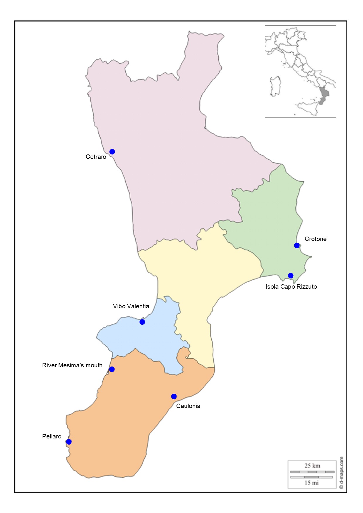 We have considered critical areas Crotone and river Mesima’s mouth; and white areas Cetraro and Isola Capo Rizzuto.