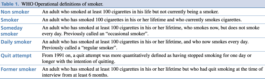 Smokers and non-smokers were defined according to the operational definitions of the World Health Organization (Table 1).31